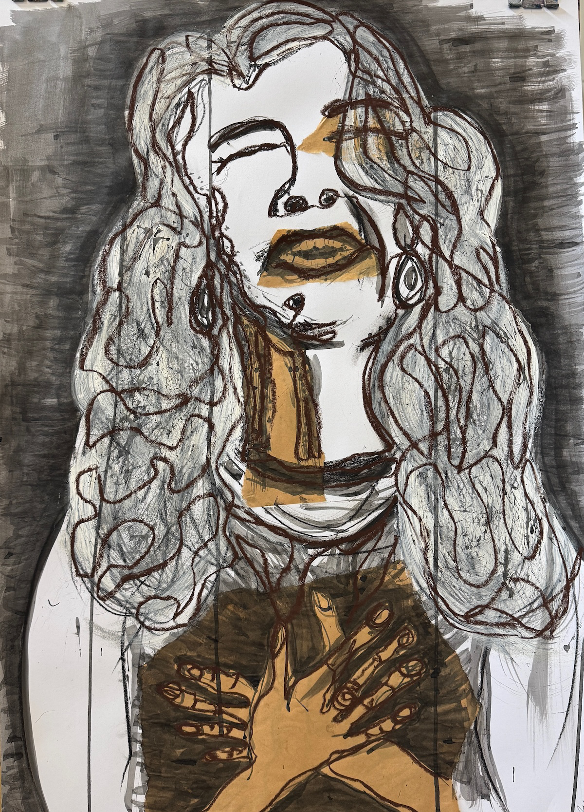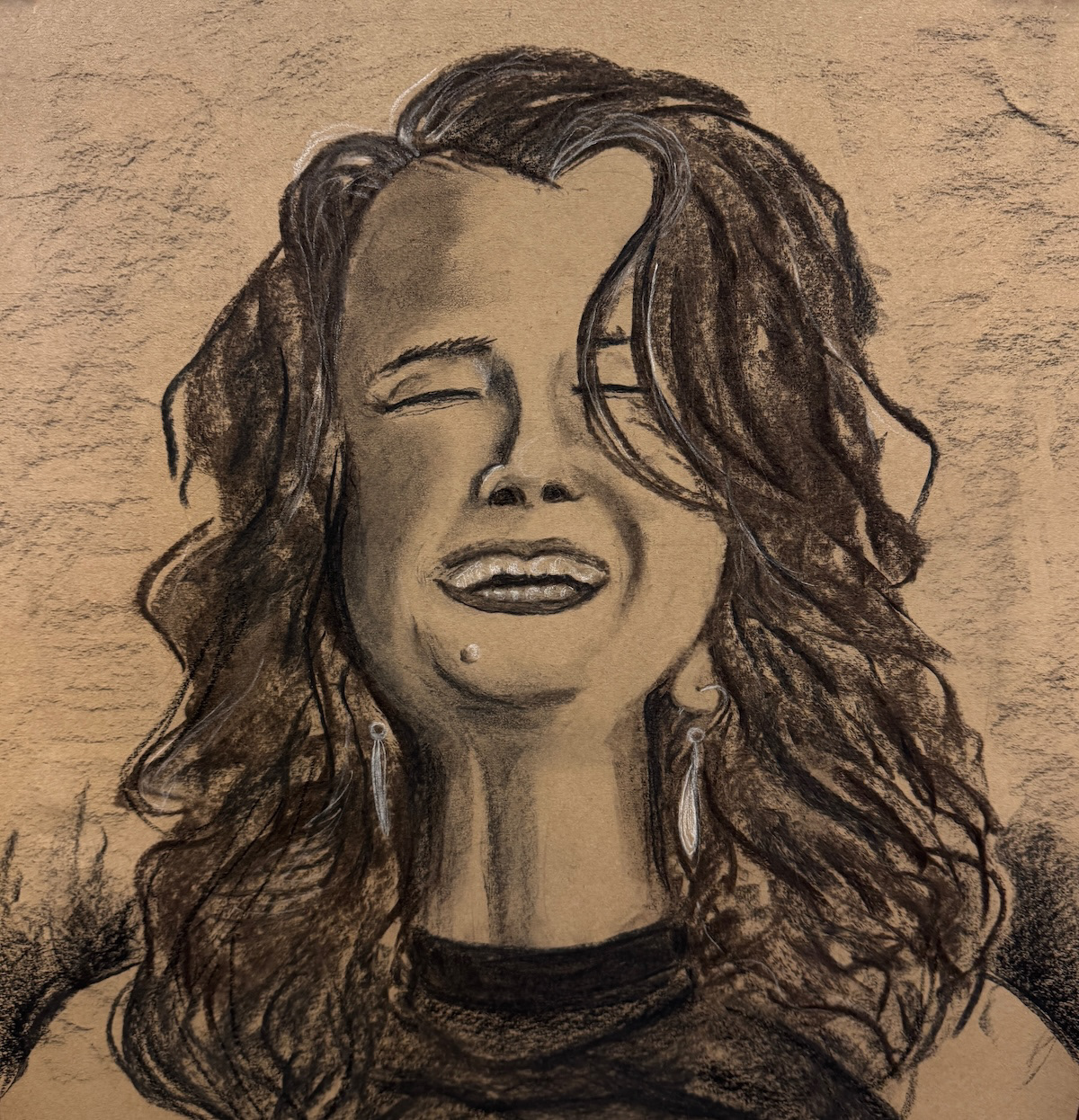 Portrait Drawing, Charcoal on Brown Paper