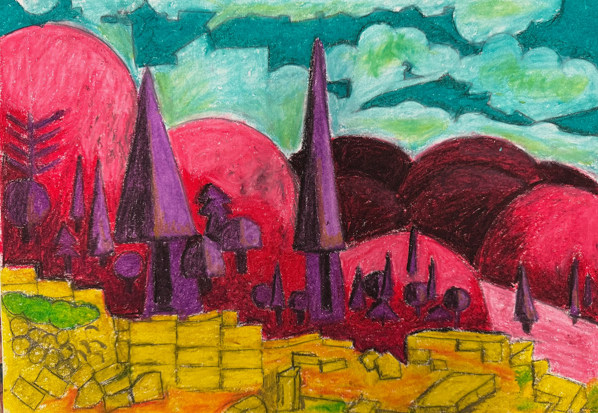 Cubist Landscape, Oil Crayon on Paper